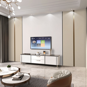 2024电视背景墙壁纸轻奢壁画简约墙纸格栅壁布高级感影视墙布