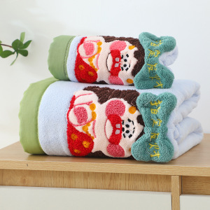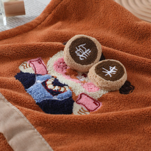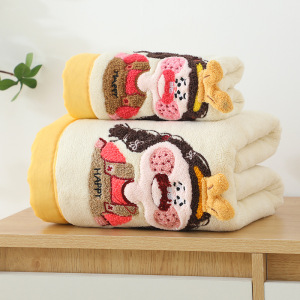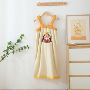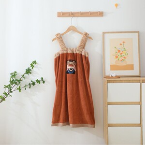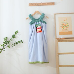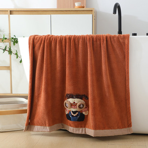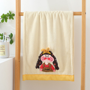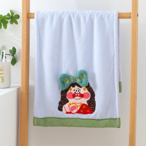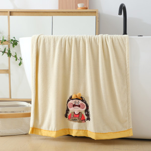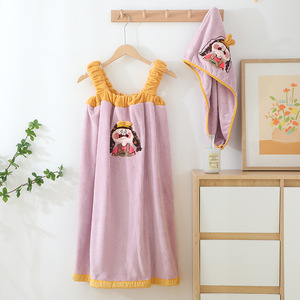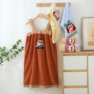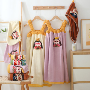 新款小富婆卡通刺绣毛巾柔软浴巾加厚干发帽大牙妹珊瑚绒浴裙套装