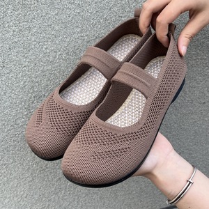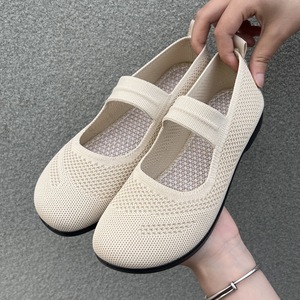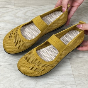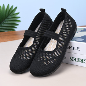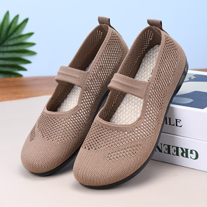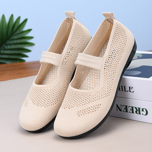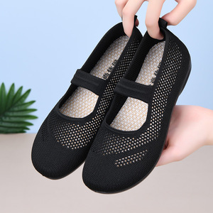 2025 夏の新スタイル古い北京布靴フライ織通気性中空女性の靴スリッポンママの靴ロートップ快適な靴