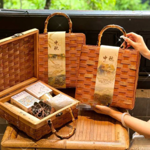 中秋節ギフトボックス、中国風手作り竹製お土産竹かご、新年の特製塩漬け肉包装かご、端午節団子かご
