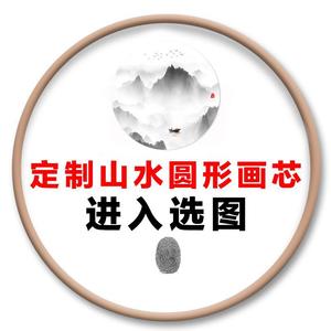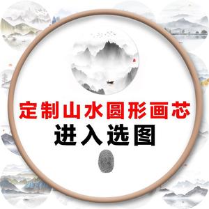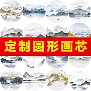 新中式水墨山水国画圆形弧形画芯墙纸茶室禅意装饰画壁画玄关图库