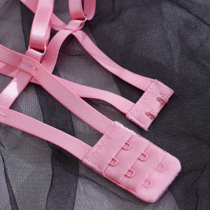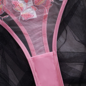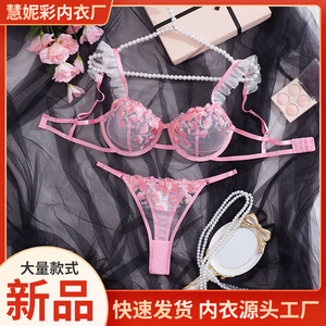 外国貿易に足を踏み入れて、ヨーロッパとアメリカの新しい超薄型刺繍入り透明メッシュレースブラセットピンクサスペンダーセット