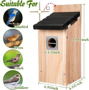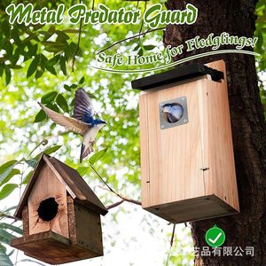 木製バードハウス屋外吊り下げブルーバードハウスカントリーガーデン鳥かご無垢材バードフィーダーレッドバード繁殖ボックス