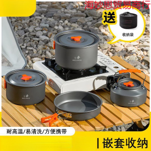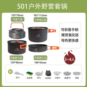 Weilin アウトドアキャンプ調理器具フィールドポータブルフライパン用品ポットピクニック食器ケトルキャンプポットセット