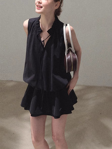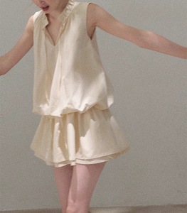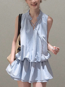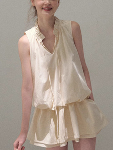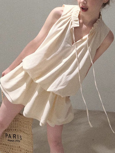 Oakmo リヨセルコットンレースアップリラックスシルエットデザインバドクラゲスカートドレス