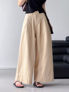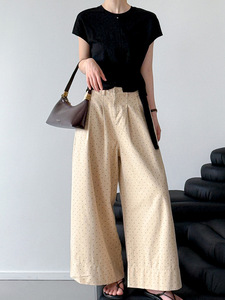 Juzhi福祉モデルは返品交換不可〜レトロデザイン総柄水玉ハイウエストストレートカジュアルパンツ2418