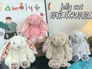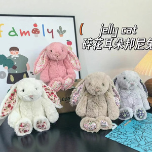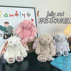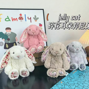 国产jellycat同款碎花邦尼兔18cm白色浅粉棕色灰色花耳朵兔玩具