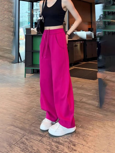 火龙果玫红色小个子直筒阔腿运动香蕉休闲卫裤女春秋2025新款