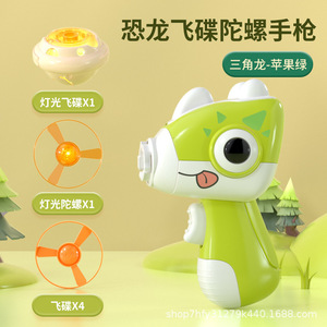 【OPP袋】アップルグリーン-トリケラトプスピストルセット(消灯空飛ぶ円盤4枚+点灯空飛ぶ円盤1枚+点灯コマ1枚)