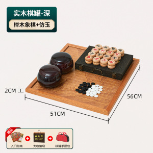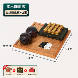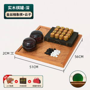 両面チェス盤 (Yunzi + Jinsan チェス) 無垢材チェスジャー - ディープ
