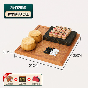 両面チェス盤(模造翡翠+赤梨チェス)竹製チェス瓶