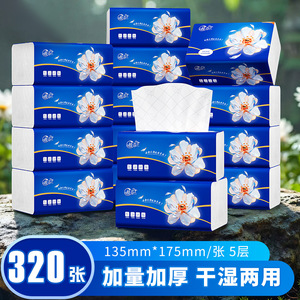 320张抽纸5层加厚餐巾纸家庭实惠装卫生纸巾擦手纸批发DF
