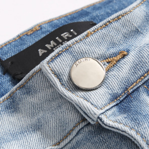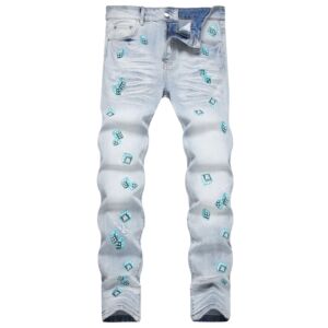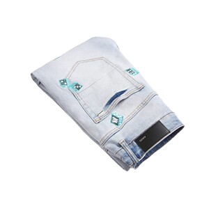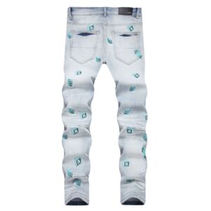 新しい既製 AM デニムブルー刺繍ウォッシュパンツ若者メンズカジュアルファッションスリムフィットデニム
