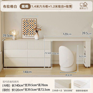 *1.4m ドレッシングテーブル + 引き出し 6 段のチェスト + メイクアップスツール
