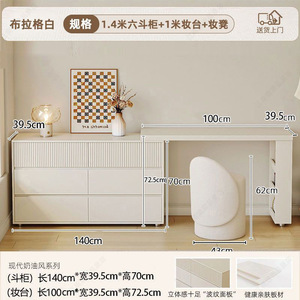 *1.4m ドレッシングテーブル + 引き出し 6 段のチェスト + キャビネット + スツール
