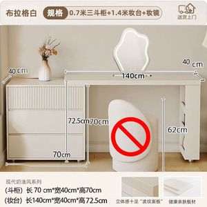 *1.4m ドレッシングテーブル + 引き出し 3 段のチェスト + メイクスツール