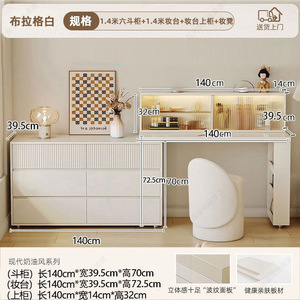 *1.4m ドレッシングテーブル + 引き出し 6 段のチェスト + 上部キャビネット