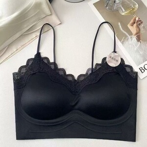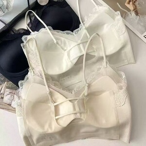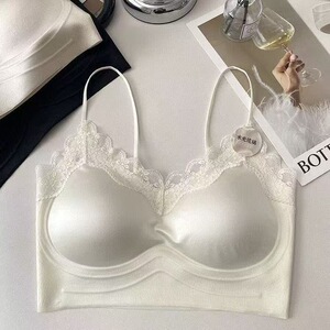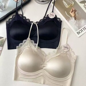 ライトラグジュアリーサテンバックレスフレンチレースサスペンダーフィックスカッププッシュアップワンピースシームレスチューブトップバックビューティー下着女性用