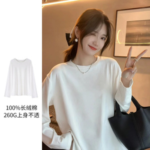 白いスウェットシャツを重ね着して長袖のルーズボトムシャツを着た女性用Tシャツ2025春秋冬の新作厚手のトップス
