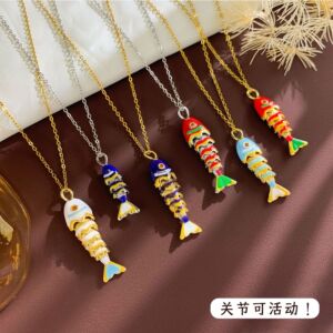 ネックレスクロスボーダーホットセール可動魚ネックレスエナメル中国風ハイエンド非退色ホットセール鎖骨チェーン