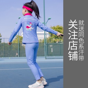 女童秋冬套装运动速干衣儿童训练服保暖加绒网球跑步防晒户外健身