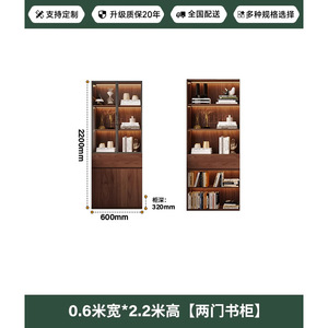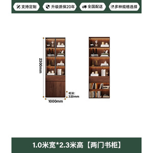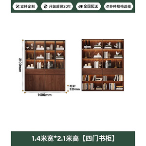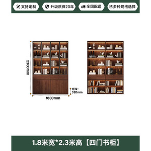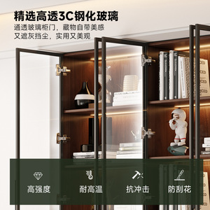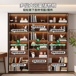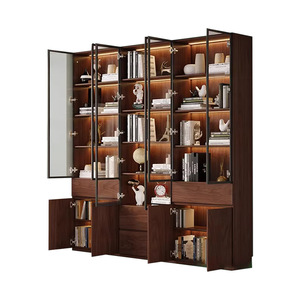中世スタイルの無垢材のリビングルームの本棚、アルミニウム合金フレームのガラスドア収納キャビネット、書斎一体型壁面ディスプレイキャビネット