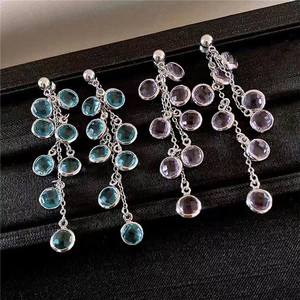 新しいライトラグジュアリーハイエンドウォータードロップジルコンタッセルイヤリングレディースファッションニッチパーソナライズバックハンギングロングイヤリング