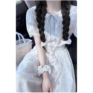 甘い花柄ドレス女性のための 2025 夏の新しい小さなリボンミッドレングススカート