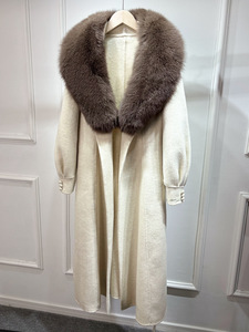 2025 東大門新フォックスファーカラー両面カシミヤコート女性のロングウール韓国スタイルルーズウールコート