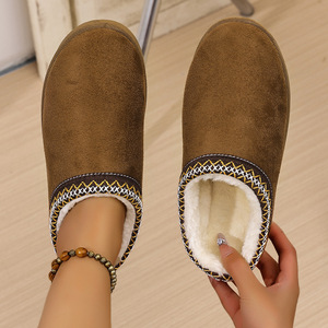 Amazonの人気の女性用コットンスリッパ2025秋冬新作ビルケンシュトックレトロハーフスリッパ暖かい厚底コットンブーツスノーブーツ