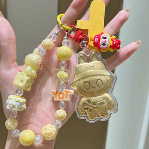 純金ラブブ漫画キーホルダーアクリルゴールドペンダントかわいいバッグ車のペンダントラブブ携帯電話チェーン