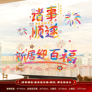 【すべてうまくいく】+【新築祝い】+【花火】静電ステッカー