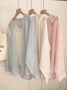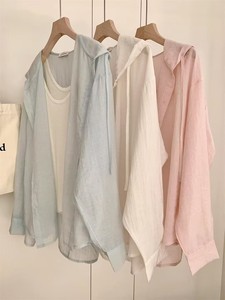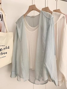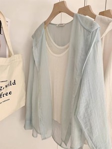 ブルーフード付き軽量長袖日焼け止めシャツレディースジャケット夏ルーズカジュアル空調シャツ小柄シャツ秋