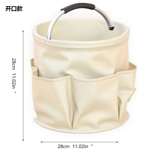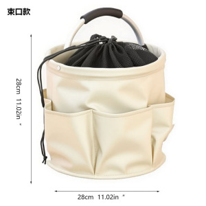 アルミハンドル付き多機能バスケット【オフホワイト】巾着風