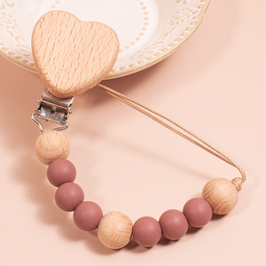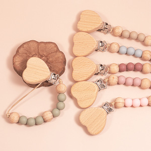 外贸etsy雕刻名字LOGO 奶嘴放掉链硅胶榉木奶嘴夹 婴儿玩具安抚