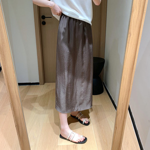 春は遅くない100アセテートスカート!アセテートサテンバックスリットストレートスカート2025夏気質スカート女性用