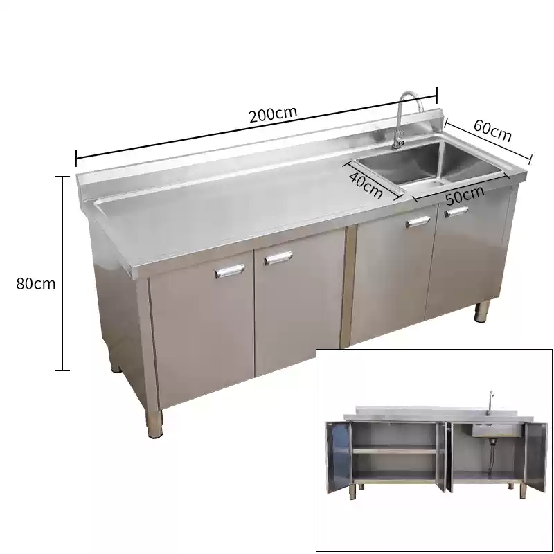 キッチン 304 ステンレス鋼のシンクシンクキャビネットワークベンチ一体型シンクシンク操作台キャビネット付き
