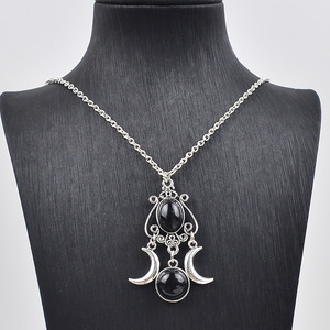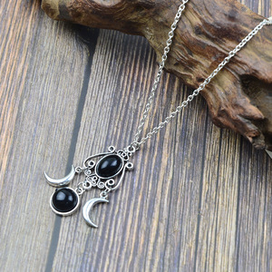 Amazon ファッション新ダークパンクレトロ黒曜石ムーンペンダントネックレストレンディな多用途ジュエリー