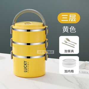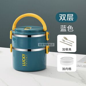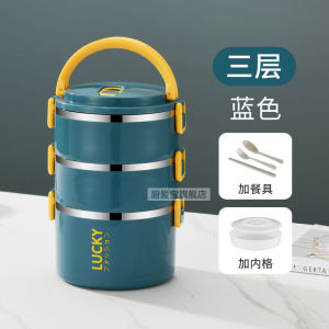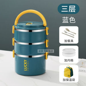 ブルーの三段式ランチボックス + カトラリー✓☆