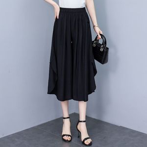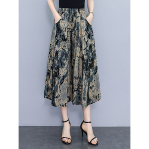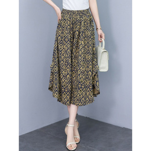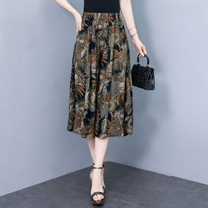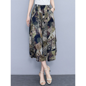 S5.4 新しい夏の純粋な綿シルク 7 分ワイドレッグパンツ女性のハイウエストドレープパンツ人工綿ルーズ薄いスカートパンツ
