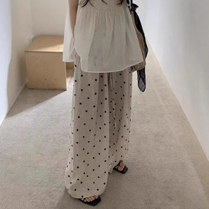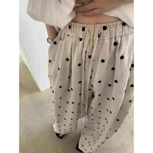 チャオ級おすすめ!超格好良い水玉模様の綿とリネンのワイドレッグパンツ女性用 2025 夏の新しい弾性巾着カジュアルパンツ