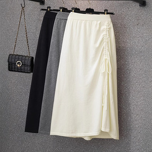 设计感不规则针织半身裙女秋冬新款松紧腰垂感抽绳a字直筒一步裙