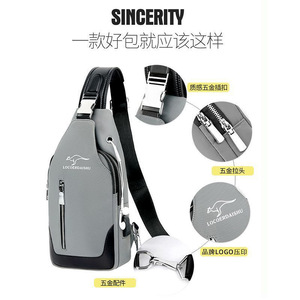 胸包男款男士运动休闲胸前包帆布单肩小背包牛津布黑色斜挎包男