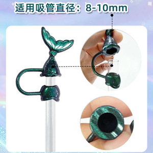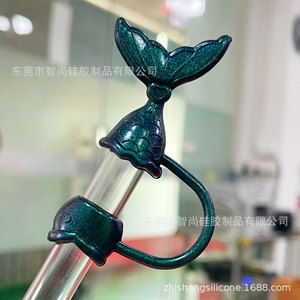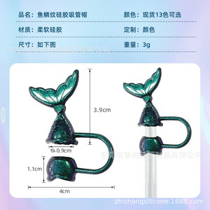 クロスボーダー 10 ミリメートルシリコンストローカバー魚鱗パターンストローキャップ食品グレードストローカバーマーメイドシリコンストロー防塵プラグ