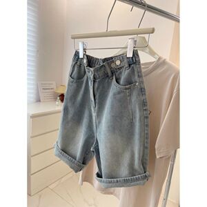 大きいサイズのデニムショートパンツ女性のための 2025 夏の新しいハイウエストルーズスリム A ライン多用途ストレートワイドレッグミッドパンツイン