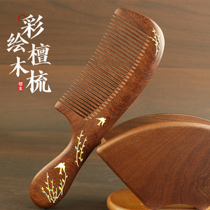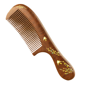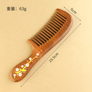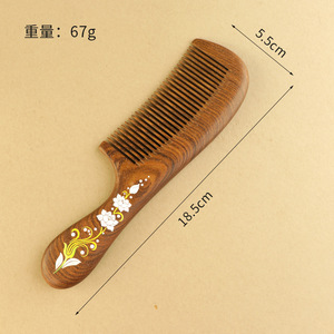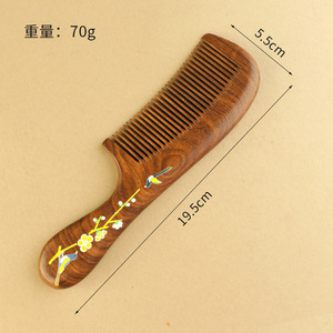 カラーブラックゴールドサンダルウッドコーム厚いサンダルウッド理髪コーム女性家庭用静電気防止ヘアコーム学生ヘアスムージングコーム木製コーム