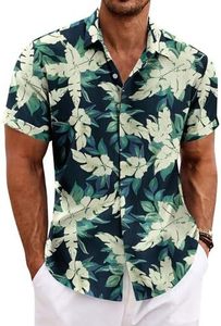 COOFANDY メンズリネンシャツ半袖カジュアルシャツボタンダウンシャツ男性ビーチ夏の結婚式の裏地