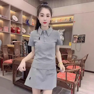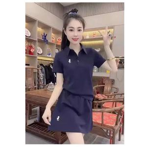 ヨーロッパ商品 2025 夏新作 カジュアル刺繍ポニー ポロカラー半袖 Tシャツ+スカート 2点セット