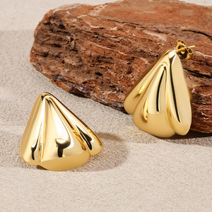 18Kゴールドメッキのチタン鋼の女性用幾何学イヤリング、軽い高級感と高級感のあるステンレス鋼のイヤリングの卸売を専門とする国境を越えた供給