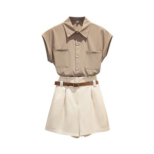 フレンチスーツ夏 2025 新しいベストシャツトップカジュアルパンツファッション 2 点セット